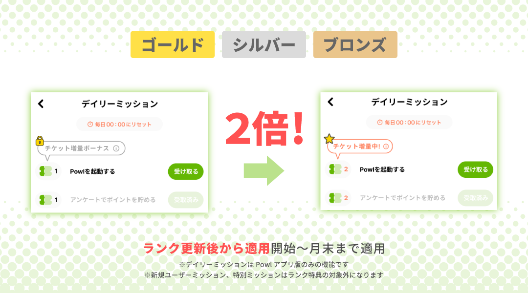 デイリーミッションチケット2倍