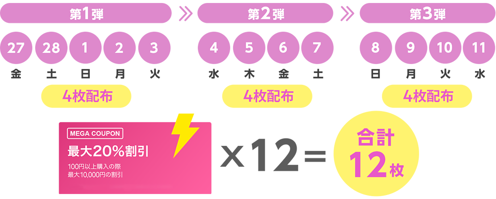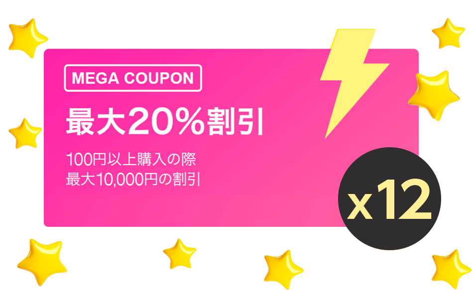 100円以上のご購入で使える20%OFFクーポンを合計12枚配布!